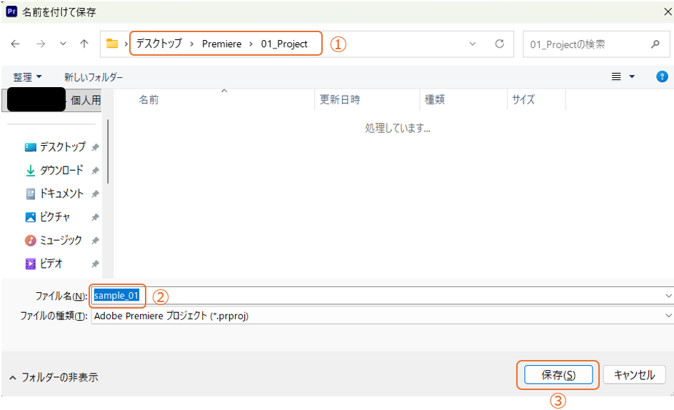 Premiereで作成したプロジェクトファイルを保存します。拡張子は「.prproj」になります。