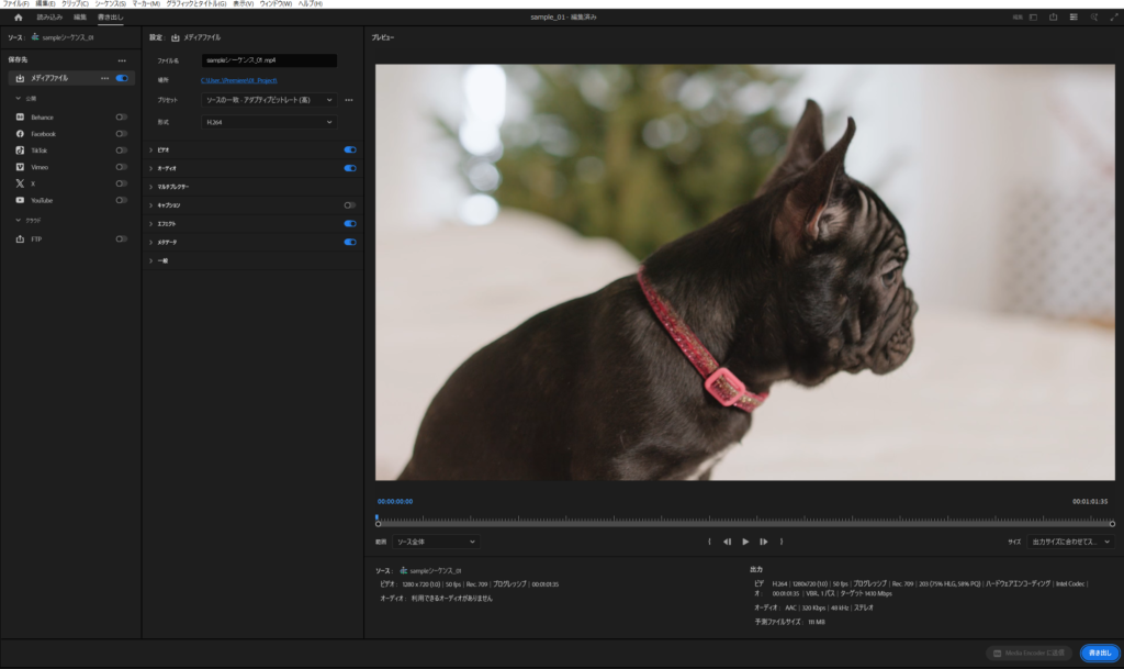※選択したシーケンスの名前になっているので、そのままで良ければ特に変更しなくてOKです。