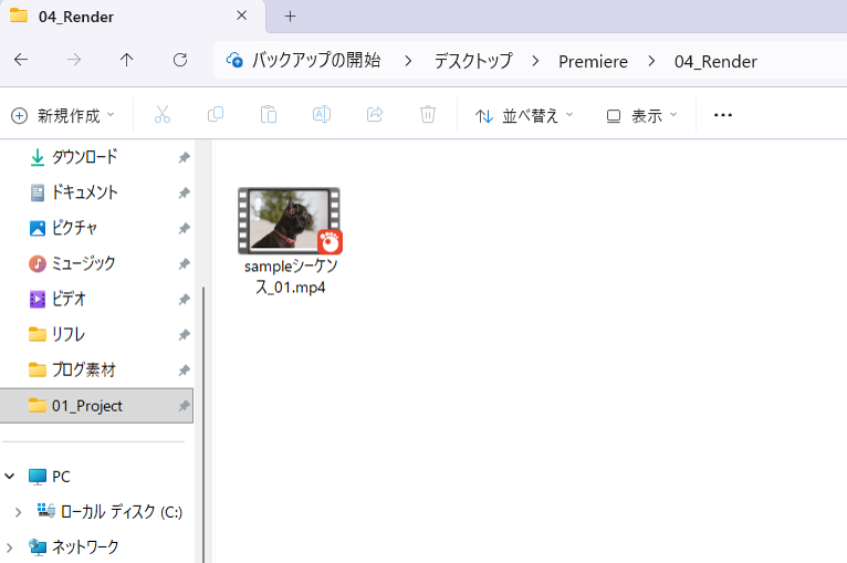 「04_Render」フォルダ内に、動画ファイルが書き出されているのを確認します。