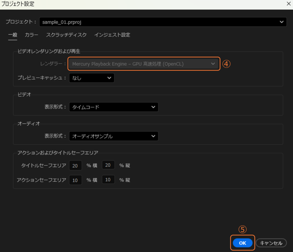 ④「レンダラー」の項目で、「GPU高速処理」の項目を選択します。